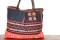 Recto, Verso with two slightly different sides, this superb ethnic handbag will surprise you by its beauty. You will discover every day with surprise new patterns, new sources of emotion and inspiration. Its large size is ideal for women who like to carry a lot of things or in a big bag for classes . Its large size is really practical and it will completely fit your shapes for a perfect look. It is made of traditional indigo batik fabrics and a wide frieze of hand made embroideries, the different yokes are old from fabrics that have been worn and assembled from old traditional clothes. This handbag has nothing in common with an industrial handbag, as the old fabrics bear witness to their past. They are works that carry a story, that of one of a tribe that lives in the high mountains of Southeast Asia. The finishes are leather, the handles, it closes with a zip and has an inside zip pocket, spaces for storage. An exceptional bag, for the history lovers who are looking for a handbag that has a history.